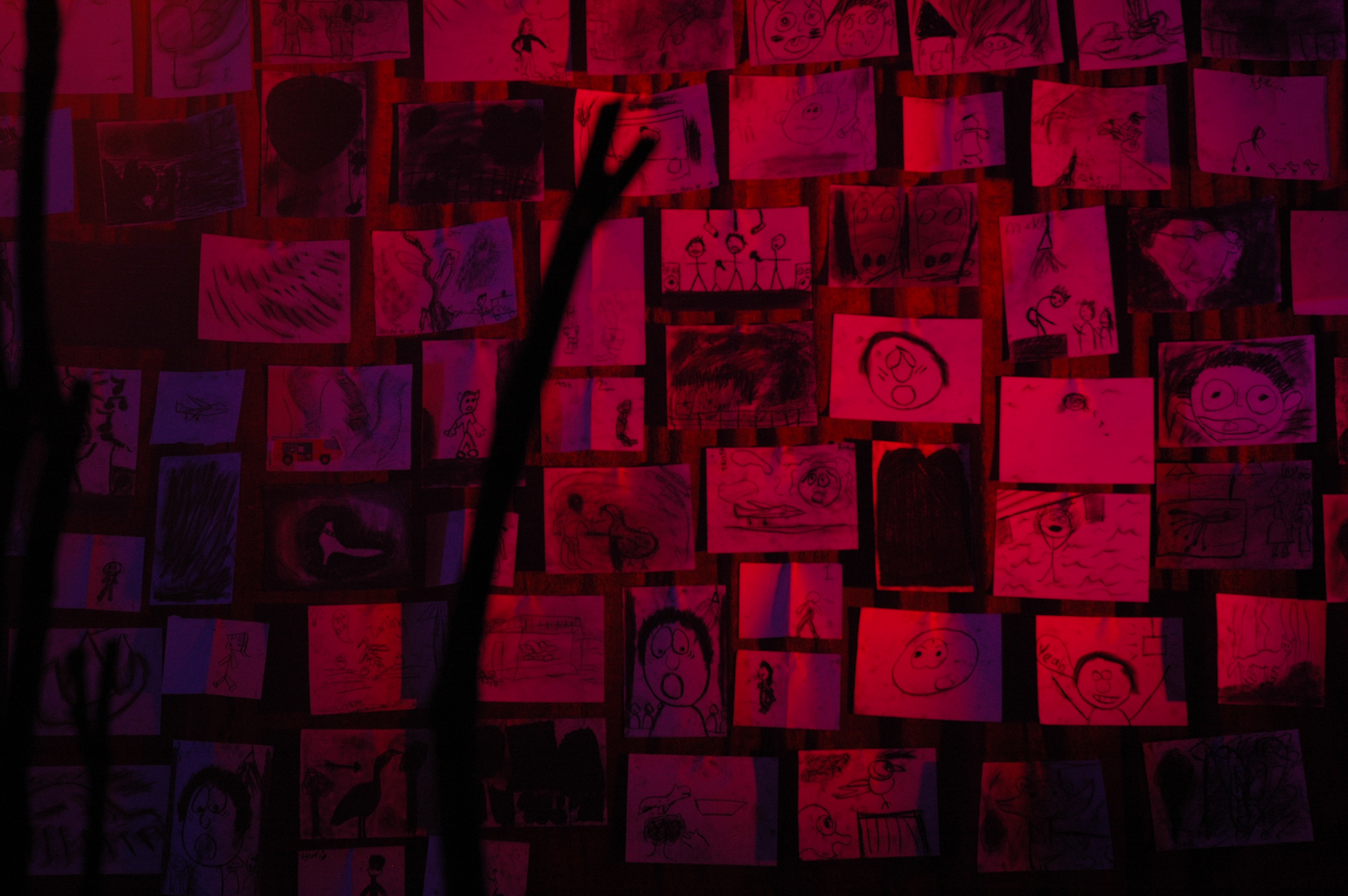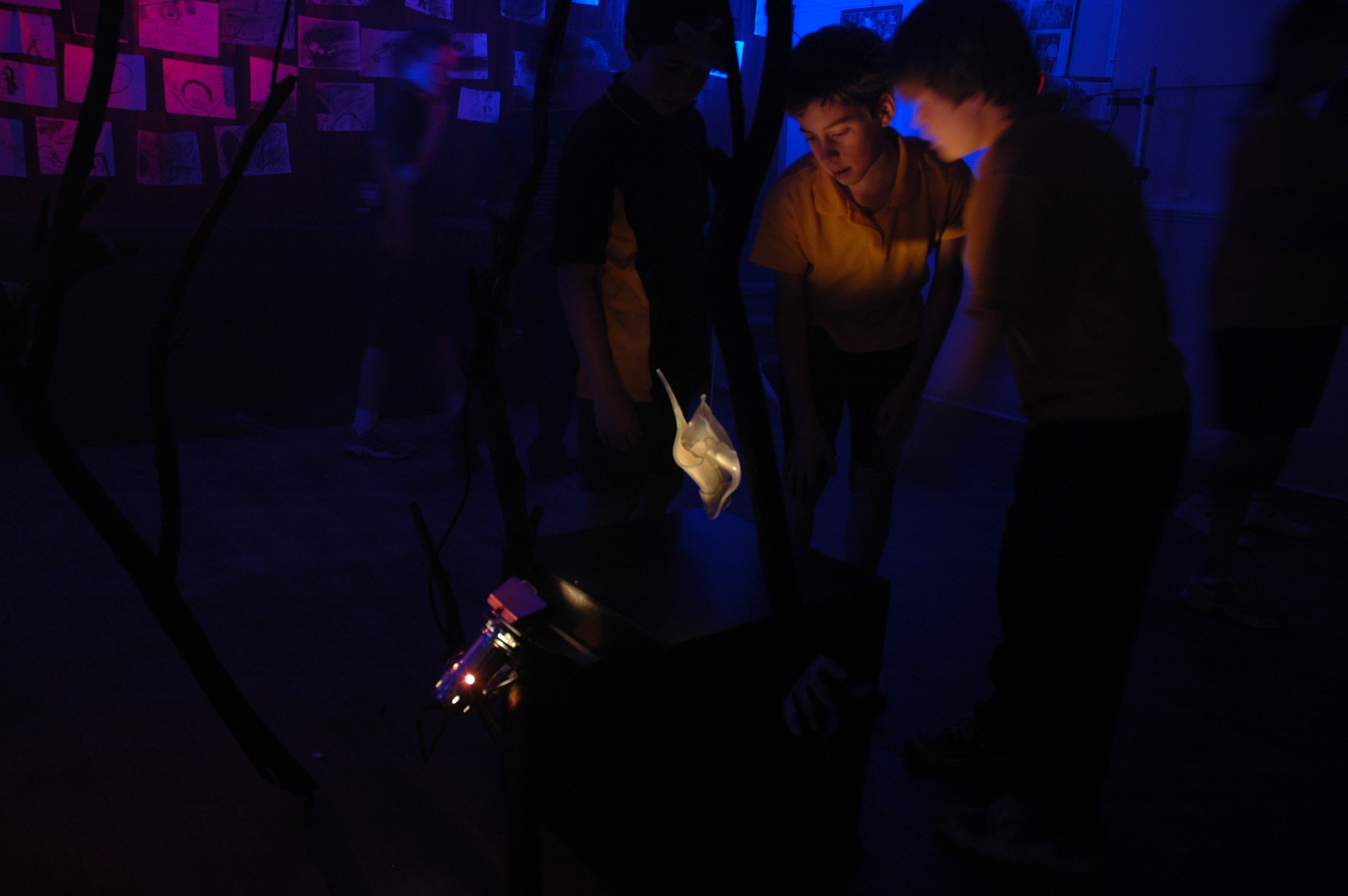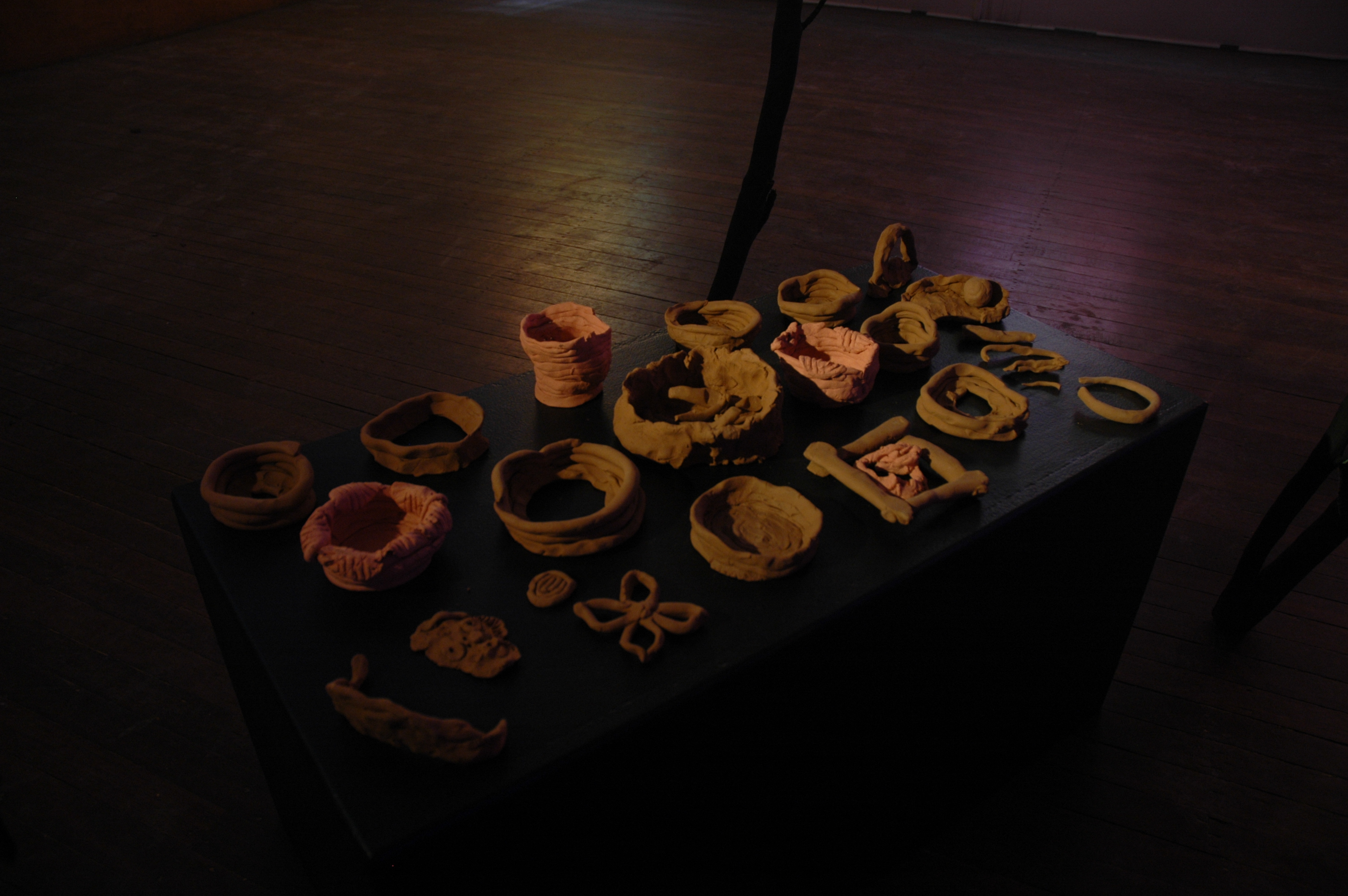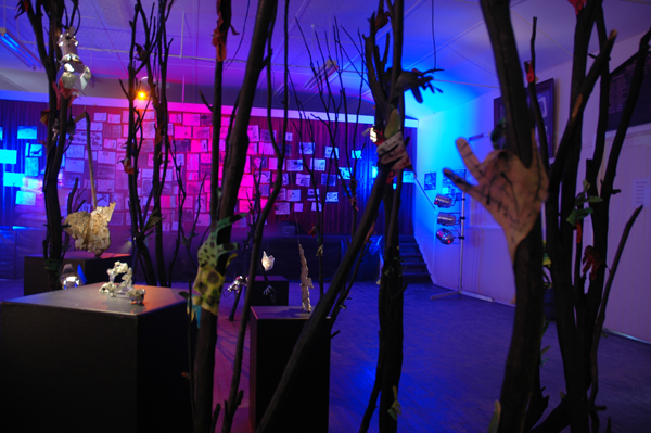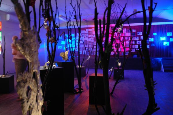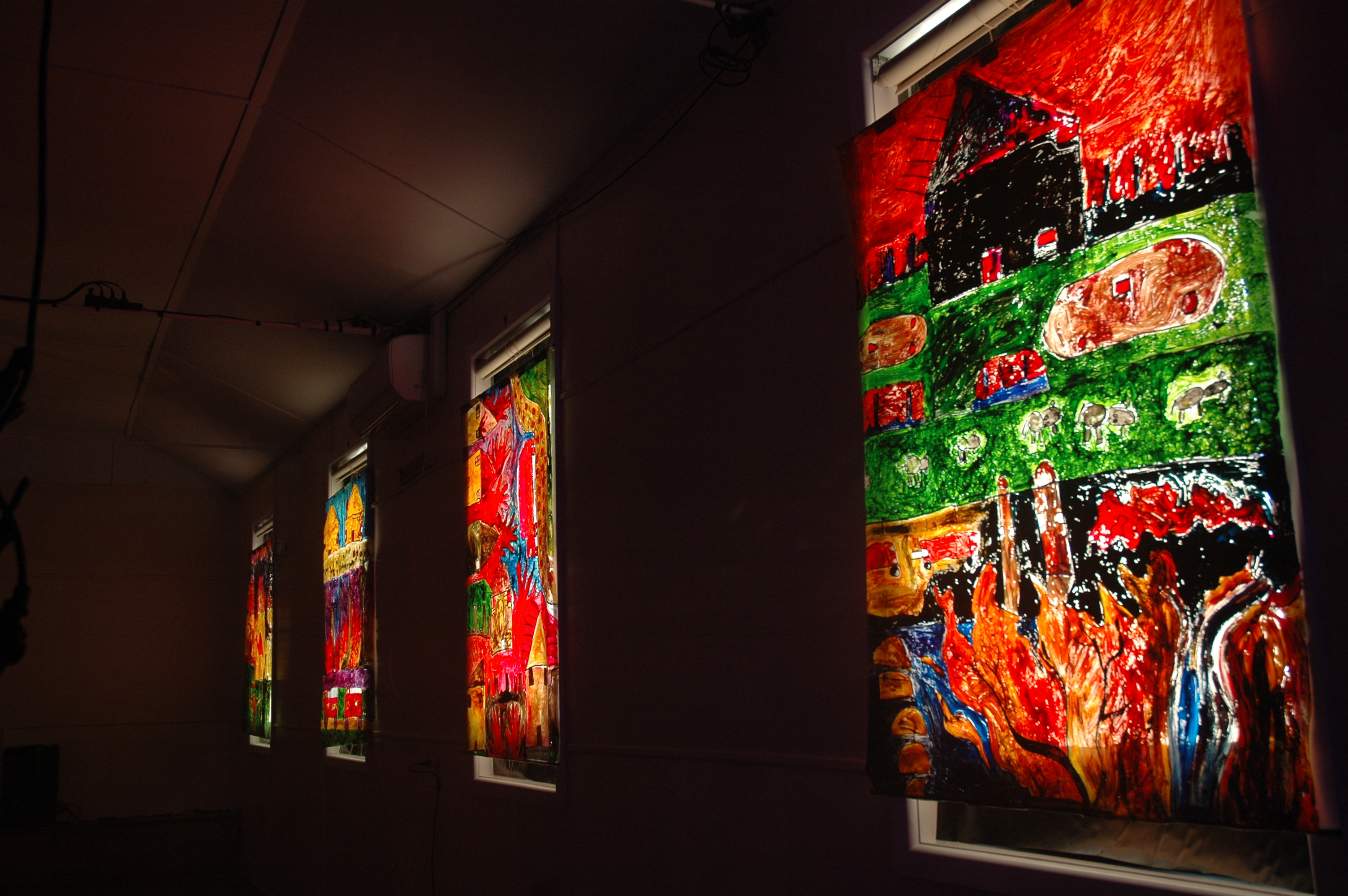 The project culminated in an installation in the Haven Town Hall which included included drawings, a gallery of melted objects from the fires, sound scape, animations, interviews, painted window panels and a forest of regenerating leaves.